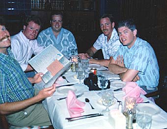 Clockwise from Geb: Geb, Dave, Mick's wife, Mick, Jacko, Terry, Varmit, Danny, Tier, Terry's wife Cindy, and Odge. This is table 1. Everyone is waiting on some chopped-up grouper from the above picture to the right. |